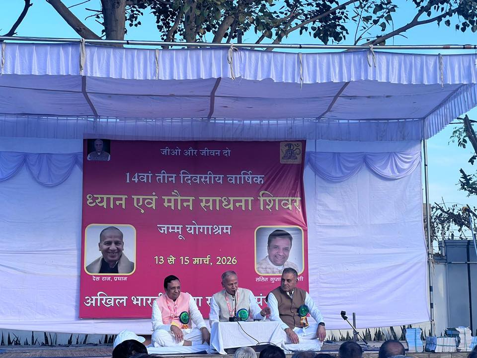 जम्मू योगाश्रम में 13 मार्च से 15 मार्च तक आयोजित तीन दिवसीय मोन एवं ध्यान साधना शिविर में 550 ध्यान प्रेमी भाग लेते हुए । Posted by yogsadmin Date April 1, 2026 Comments 0 comment yogsadmin Previous post Sh Desraj ji in Dehradun , Uttrakhand yog shivir along with sh Mohan Virmani ji, mantri uttrakhand April 1, 2026 Next post Indian Yoga Association से सीसीवाई परीक्षा में पास करने पर भारतीय योग संस्थान के लगभग 500 शिक्षक योगाश्रम में आयोजित योग प्रशिक्षण शिविर में प्रमाण पत्र प्राप्त करते हुए । April 1, 2026 You may also like Indian Yoga Association से सीसीवाई परीक्षा में पास करने पर भारतीय योग संस्थान के लगभग 500 शिक्षक योगाश्रम में आयोजित योग प्रशिक्षण शिविर में प्रमाण पत्र प्राप्त करते हुए । April 1, 2026 भारत मंडपम, प्रगति मैदान में इंटीग्रेटेड आयुष मंत्रालय द्वारा आयोजित तीन दिवसीय आरोग्य उत्सव 2026 मैं श्री देसराज जी योग और स्वास्थ्य पर सरगंभित वार्ता देते हुये। February 25, 2026 77 वें गणतंत्र दिवस व शिक्षक सम्मान दिवस के अवसर पर भारतीय योग संस्थान January 28, 2026